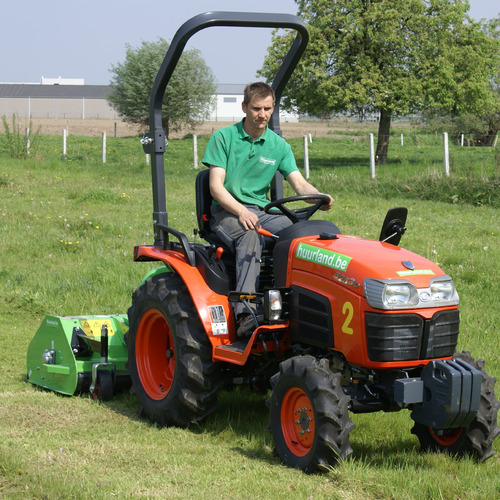 Ce broyeur à fléaux doit être raccordé à un mini-tracteur et sert à faucher les broussailles, les herbes hautes, etc. La végétation est hachée sur place. Peut être utilisé sur de grandes superficies et des terrains difficiles et peut faucher des herbes jusqu'à 1 mètre de haut. largeur de travail 120 cm 76 fléaux de broyeur Y pour le fauchage et le mulching : épaisseur 4 mm hauteur réglable puissance nécessaire 25 ch régime transmission 540 tr/min vitesse entre 2 et 6 km/h en fonction de la hauteur et de la densité de la végétation En cas de location avec le tracteur de Huurland, Huurland fournit le cardan adapté avec goupille de cisaillement. En cas de location séparée, Huurland ne prévoit pas de cardan. Le client utilise alors son propre cardan avec goupille de cisaillement. À défaut, la couverture d'assurances expire.