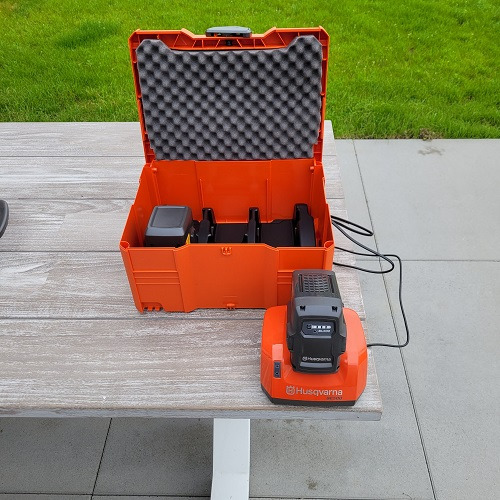 Louez maintenant un coffret pratique avec 2 batteries et un chargeur pour recharger les machines de jardinage alimentées par batterie : débroussailleuse, taille-haie sur manche, taille-haie et tronçonneuse. Assurez un travail continu en ayant toujours une batterie chargée à portée de main. Emballage pratique dans une boîte robuste. Contenu : 2 batteries 9.4 AMP 1 chargeur