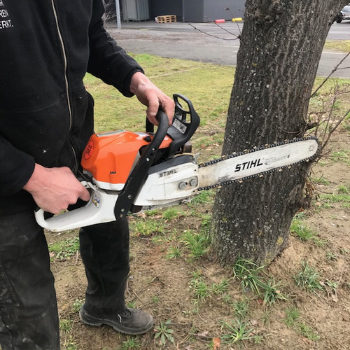 Louez une puissante scie à bois professionnelle Stihl pour le sciage de branches et l'élagage de grands arbres. Utilisation facile et sans danger, pas de dépendance au cordon électrique. Huile de chaîne et Aspen, écologique 2 temps disponible. La chaîne est vendue séparément. 2,5 kW - 2 T essence - 53,2 cc capacité du réservoir : 1 L frein de chaîne à arrêt rapide automatique graissage automatique de la chaîne