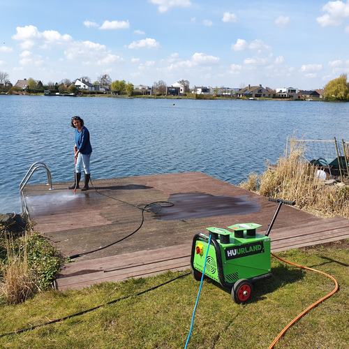 Ce nettoyeur haute pression électrique est souvent loué pour ettoyer les terrasses, allées, toits, voitures, machines, etc., mais aussi pour déboucher les égouts à l'aide d'un furet. Ce pulvérisateur électrique haute pression fonctionne à 130 bar, mais délivre surtout un débit d'eau élevé de 11 L/min, ce qui donne un effet de nettoyage intense. Voilà pourquoi ces machines surpassent les nettoyeurs haute pression des magasins de bricolage en termes de puissance nettoyage. Le nettoyeur haute pression est loué en standard avec 1 tuyau HD 15m et la buse inclus. Ce matériel est inclus dans le prix de location. Les autres accessoires sont facturés. 2,2 kW - 220 V - 10 A - 100 bar 11 L déb/min - Tmax = 70 °C tuyau HP 15 m + buse inclus