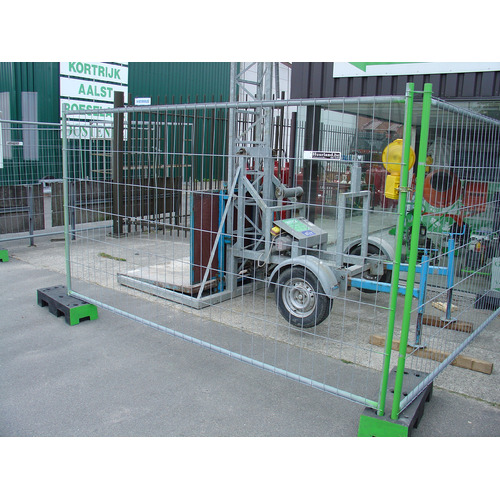 Louez des barrières de chantier pour clôturer temporairement votre chantier ou événement. Hauteur 2,07 m, longueur 3,5 m. Pieds et brides gratuitement inclus ! Possibilité de masquer les barrières de chantier avec de grandes bâches noires. En cas de location d'un rack de barrières complet (par 30 pcs.) il y a des remises. Mettez en valeur Huurland sur votre chantier en accrochant une bâche publicitaire et bénéficiez également d'une réduction. Renseignez-vous auprès des filiales. Demandez-nous nos intéressantes offres de prix pour longue durée. En cas de livraison d'un rack de barrières complet, le coût de livraison se multiplie par 2. ATTENTION : Les cbarrières de chantier doivent être installées pour la collecte dans le rack d'empilage de la manière et à l'endroit indiqués à la livraison. Si le rack n'est pas prêt correctement, la collecte ne peut pas avoir lieu. Ensuite, la location continue jusqu'au moment où la collecte peut avoir lieu correctement et nous devons facturer le double des frais de transport.