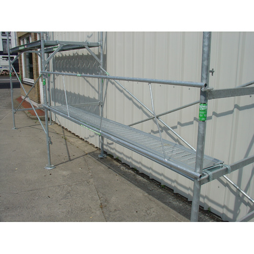 Échafaudage de façade. Peut servir d'échafaudage de maçon et de façade. L'échafaudage comprend une structure de base fixe de 3 m x 1 m, mais est extensible en largeur par 3 m et en hauteur par 2 m. Le montage de base inclut les cadres et les diagonales. Ajouter autant de plateaux, garde-corps, ancrages, bâches, plinthes et stabilisateurs que souhaités. À ajouter en option. Nous vous conseillons avec plaisir pour une structure correcte. La caution des pièces gratuites n'est pas compris dans la caution proposée. Nous facturons une caution supplémentaire pour les autres pièces. Classe 4 (300 kg/m²) - fourni avec les cadres ouverts et fermés. Convient uniquement pour une installation fixe.