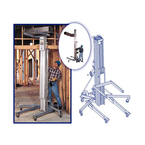 Élévateur de matériaux pratique pour le montage, l'installation et les travaux d'entretien. Idéal pour soulever et installer des conduits de ventilation, des appareils, des machines, etc. en hauteur. Cet élévateur peut être facilement utilisé et déplacé. Il peut soulever une charge de 250 kg jusque 5,5 m de haut. capacité de levage max. 250 kg hauteur max. 5,5 m H replié 2,2 m rabattu : 2.2 m x 0,76 m x 0,83 m