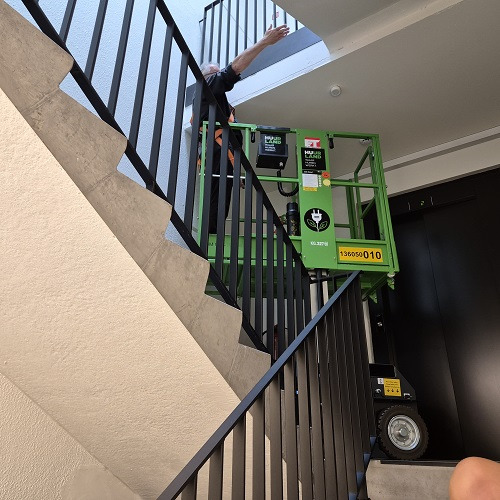 La location d'une nacelle à mât est une solution idéale pour de nombreux projets et secteurs tels que les travaux de construction, de rénovation et d'entretien dans des environnements industriels, commerciaux, des bâtiments administratifs, des établissements de soins, etc. Grâce à son faible poids et à ses dimensions compactes, cet élévateur à mât peut être facilement transporté sur une remorque standard ou dans une camionnette. Il peut passer par une porte standard ou dans un ascenseur, ce qui est parfait pour travailler dans les immeubles de bureaux, par exemple. Robuste, polyvalent et pourtant peu bruyant grâce à sa motorisation électrique : ce monte-matériaux permet à tout opérateur de travailler en hauteur de manière sûre et confortable et réduit de moitié le temps d'exécution par rapport aux solutions traditionnelles telles que les échelles ou les échafaudages. ATTENTION : cette nacelle élévatrice est uniquement adaptée à une utilisation en intérieur, et non en extérieur. Capacité : 227 kg Poids propre : 560 kg Hauteur de la plate-forme : 2900 mm Hauteur de travail : 4900 mm Largeur : 760 mm Longueur de base : 1192 mm Longueur de la plate-forme : 1036 mm Longueur de la plate-forme étendue : 1700 mm Largeur de la plate-forme : 630 mm