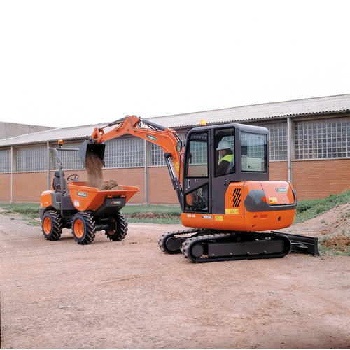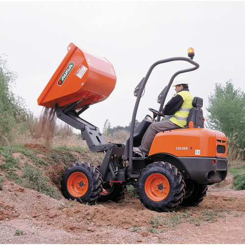 Ce dumper sur roues compact est à louer pour les travaux de terrassement sur terrain peu accessible. La machine ne mesure que 120 cm de large. Le dumper possède une capacité de charge de 1200 kg (+/- 0,7 m³). Le bac de chargement de ce dumper peut suelement basculer par le haut. Le chargement peut ainsi être déversé à l'avant du dumper. Il peut également être déchargé dans un conteneur. Grâce aux 4 roues motrices, le dumper sur roues est adapté à un terrain accidenté. - moteur diesel 23 ch - capacité de charge 1200 kg - basculement par le haut - poids 1375 kg - max 8 heures au compteur par jour / 10.8 heures par week-end ; heures supplémentaires facturées à 1/8e du tarif journalier