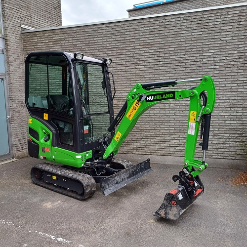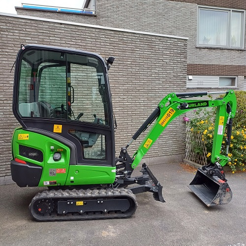 Mini-pelleteuse compacte 1600 kg sur chenilles avec cabine. Le prix inclut un godet au choix. Largeur de voie 99 cm. profondeur d'excavation max 225 cm hauteur de déversement max 229 cm Bacs gratuits au choix toujours inclus : - Bac de tranchées : 20 cm - Godet à dents : 40 cm - Godet de curage : 80 cm - capacité du réservoir à carburant : 21 L - max 8 heures au compteur par jour / 10.8 heures par week-end ; heures supplémentaires facturées à 1/8e du tarif journalier