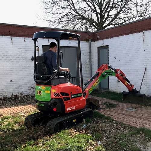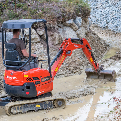 Louez cette pelleteuse compacte pour vos petits travaux de terrassement, tels que l'excavation d'une tranchée, de chambres de visite, etc. Grâce à sa largeur limitée à 125 cm, cette mini-pelleteuse passe aussi à travers des passages étroits. Son poids léger de 1700 kg constitue un autre atout et permet de transporter la machine sur une remorque. Dès que le passage mesure plus de 140 cm, Huurland vous conseille de louer une pelleteuse plus grande (àpd. 2,5 T). Il ne vous en coûtera pas beaucoup plus, mais le rendement sera bien meilleur. Les chenilles peuvent être rétractés jusqu'à 100 cm. profondeur d'excavation max 246 cm hauteur de déversement max 252 cm Bacs gratuits au choix toujours inclus : - Bac de tranchées : 20 cm - Godet à dents : 40 cm - Godet de curage : 80 cm - capacité du réservoir à carburant : 19 L - max 8 heures au compteur par jour / 10.8 heures par week-end / 40h par semaine ; heures supplémentaires facturées au prorata