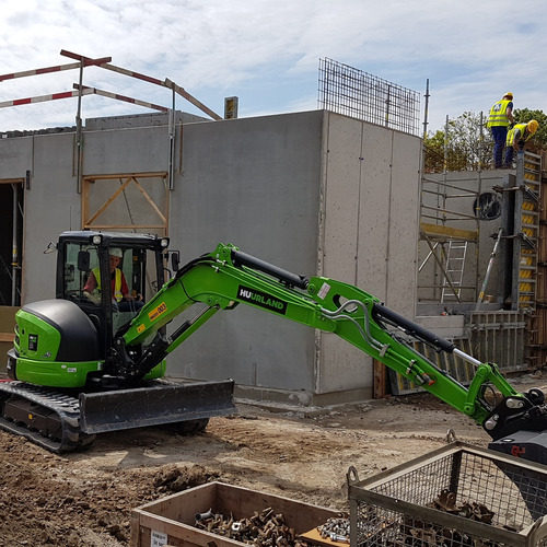 La mini-pelleteuse de 5,5 T est parfaitement équipée pour tout professionnel de la construction. Cette pelle mécanique a été approuvée pour des travaux de levage et peut être munie d'un grappin de tri. Louez cette pelle mécanique pour vos travaux de terrassement, de démolition, etc. La cabine est luxueusement équipée de tout le confort nécessaire, y compris la climatisation. Ce type de pelleteuse est sans déport. La largeur de voie plus élevée rend cette pelleteuse très stable. profondeur d'excavation max 3,63 m hauteur de déversement max 4,00 m Bacs gratuits au choix toujours inclus : - Bac de tranchées : 35 cm - Godet à dents : 60 cm - Godet de curage : 150 cm - capacité du réservoir à carburant : 68 L - max 8 heures au compteur par jour / 10.8 heures par week-end / 40h par semaine ; heures supplémentaires facturées au prorata - charge de levage selon tableau figurant dans le manuel - largeur de voie 196 cm