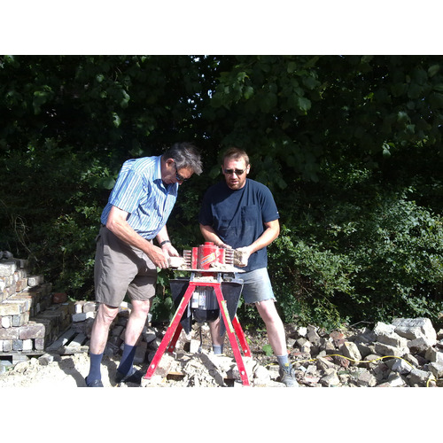 Toestel om afbraakstenen te reinigen, cement af te kappen voor recuperatie. 220 V - 1,1 kW beitelhoogte = 10cm Werkhoogte ongeveer 1 meter de huurprijs is incl. de slijtage van de beitels