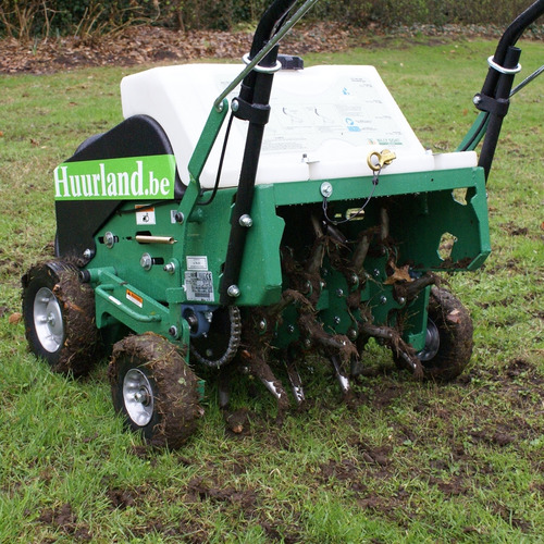 Huur een hollepijpbeluchter om holle pijpjes te boren in de grasmat. Deze tuinmachine wordt verhuurd om de bodemstructuur te verbeteren. De pijpjes zorgen voor een betere drainage en verluchting van de grasmat, wat de grasgroei ten goede komt. Naar keuze worden de pijpjes open gelaten, of worden deze ingerakeld met compost of scherp zand. De verluchter verhuren wij in een kit van 3 machines om structureel ongezonde gazons te renoveren. 4-takt - 5,5 PK HONDA werkbreedte 46 cm watertank als extra ballast