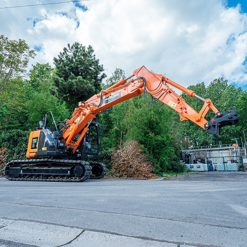 De graafmachine in de 13-tons klasse is een veelzijdige kraan die verhuurd wordt in de bouw en omgevingsaanleg. Deze graver wordt niet verhuurd aan particulieren. Deze kraan is gekeurd voor hijswerken. Huur nu deze superieure graafkracht, gekoppeld aan soepele bewegingen. De graafmachine heeft een zeer groot werkbereik, en hoge hefvermogen. Huur deze kraan voor grondwerken, afbraakwerken, e.d. uitrusting: dubbele giek (of 2-delige boom), knikarm 252 cm; rubber tracks max. graafbereik 838 cm max. graafdiepte 525 cm max. storthoogte 702 cm hefvermogen varieert van 1,5 ton tot 7.5 ton, afhankelijk van de afstand van de last tot de machine. Zie tabel "Hefcapaciteit". max 8u/dag, 10.8u/weekend of 40u/week op urenteller; extra werkuren worden verrekend aan 1/8 dagtarief per uur.