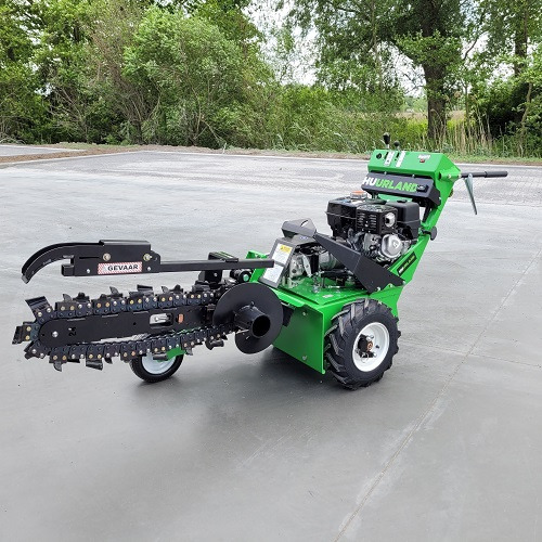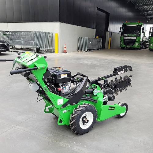 Huur een efficiente graafmachine om kabels, drainage, beregening en waterleidingen in de grond te brengen tot dieptes van 60 cm. De sleuvengraver trekt een perfecte gleuf die je na de plaatsing snel en proper kan dicht maken, met een minimale beschadiging van de ondergrond. Het werk gaat veel sneller dan met een minigraver. Motor: Honda GX270 9 pk Gewicht: 280 kg Graafketting: 10 cm breed - 60 cm diep Sleufdiepte: traploos regelbaar van 0 tot 60 cm Sleufbreedte: 10 5 cm Snelheid: vooruit max. 3,3 km/u Snelheid: achteruit max. 1,65 km/u Totale lengte: 205 cm Hoogte: 109 cm Wielbasis: 67 cm enkel te gebruiken in steenvrije grond