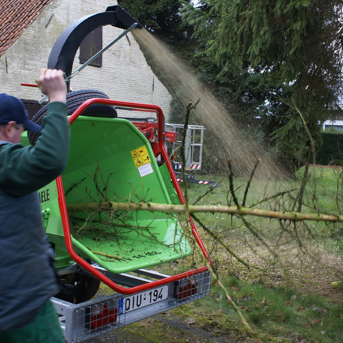 Huur deze krachtige houtversnipperaar voor het grotere werk, in openbare omgevingen of parktuinen. De hakselaar heeft een 52 PK dieselmotor, invoerrollen met antistress. Daardoor kan je deze houthakselaar huren voor het hakselen van vers hout tot max. 16 cm in diameter. De snippers zijn uniform van afmetingen en bruikbaar als bodembedekking. De machine staat op een geremde aanhanger, en weegt maximaal 1250 kg. - motor: 52 PK diesel - met invoerrol - incl. anti-stress systeem - max. diameter hout 16 cm - max 8 uur op teller per dag / 10.8 uur per weekend; extra uren worden verrekend aan 1/8ste dagtarief