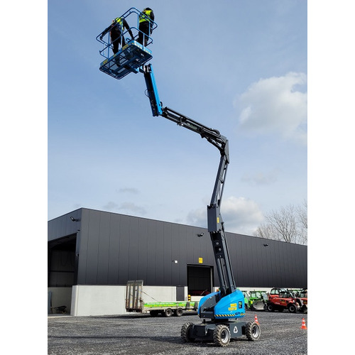 Huur nu een zelfrijdende elektrische kniktelescoop 16 m voor montage-, installatie- en onderhoudswerken vooral in de industrie. Volledig elektrisch aangedreven, stil en zero-emissie zorgt ervoor dat de machine ideaal is om in te zetten voor werkzaamheden binnen magazijnen en fabriekshallen. De machine kan enkel gebruikt worden op vlakke terreinen, ze heeft geen 4WD. Het toestel is uitgerust met speciale non-markingwielen die geen sporen nalaten. Door zowel kooirotatie en jibrotatie kan de hoogtewerkerbestuurder elke plek bereiken. Aandrijving Elektrisch (batterij) max. werkhoogte 16 m max. platformhoogte 14 m max. horizontale reikwijdte 7,6 m liftcapaciteit 230 kg afmetingen platform 2,00 x 0,85 x 1,1 m