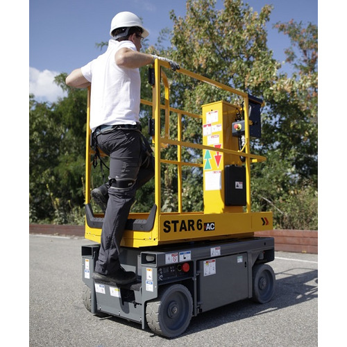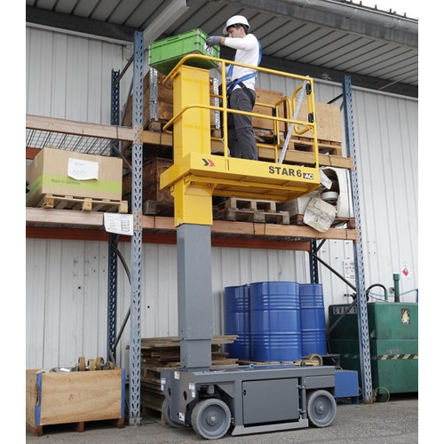 Huur een masthoogwerker met verticaal uitschuivende mast. Deze hoogwerker staat ook wel gekend als een verticale hoogwerker of manlift. De masthoogwerker is wendbaar, nauwkeurig en soepel te besturen. De manlift is compact door de verticaal uitschuifbare arm, waardoor het platform boven het centrum van de machine blijft. De masthoogwerker of manlift biedt een perfect bereik voor werken tot op een hoogte van 6m. Deze verticale masthoogwerker is uitermate geschikt in een retail-, logistieke of industriële omgeving. De schaarliften zijn te huur op korte termijn. Voor lange termijn zijn er extra kortingen. Technische specificaties: - werkhoogte 5,8 m - platformhoogte 3,8 m - platform 77 x 138 cm - lengte 140 cm - breedte 79 cm - hoogte 175 cm - hefcapaciteit 230 kg - gewicht 835 kg