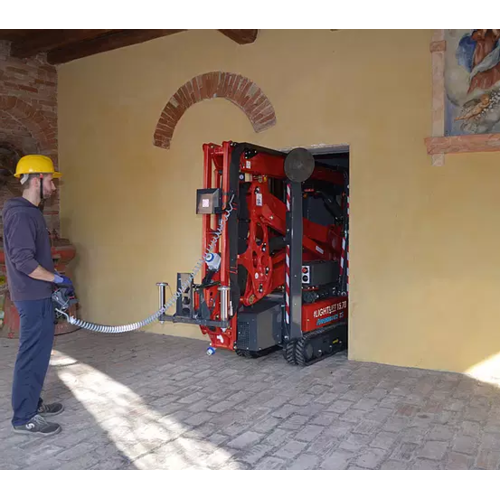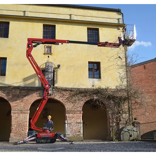 Een rupshoogwerker huur je voor werkzaamheden in- en rond elk type gebouw. Vaak wordt de machine gehuurd voor schilder- en renovatiewerken. Maar ook de tuinaannemer huurt de spinhoogwerker voor zijn snoeiwerken. De machine wordt vaak verhuurd op plaatsen waar een lage bodemdruk van belang is, zoals in de restauratie van historische gebouwen. Een rupshoogwerker of spinhoogwerker is uitermate compact gebouwd. Met dit type hoogwerker kan je door een standaard deur - het toestel kan versmald worden tot 75 cm. Bovendien heeft deze hoogtewerker een laag eigen gewicht, waardoor je hem kan vervoeren op de aanhangwagen. De spinhoogwerker is gebouwd op een rupsonderstel, waardoor hij op elk type ondergrond kan rijden, met een minimum aan schade aan de ondergrond. Ondanks deze compactheid heeft deze spin een indrukwekkende werkhoogte van 15,4 meter en een werkbereik van 6,6 meter. De machine is zowel met een electro- als benzinemotor uitgerust. max. werkhoogte 15,4 m bij 230 kg belasting max. platformhoogte 13,3 m max. horizontaal bereik 6,60 m max. op & over bereik 7 m draaibereik 360° werkbreedte (uitgeklapte stempels): 340 cm draagvermogen platform: 230 kg Bi-energy: electr. motor 220 V en benzinemotor (euro 95)