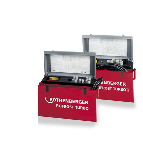 Pijpvriesmachine bevriest water in de buizen. Herstellingen aan chauffages en ketels wordt gemakkelijker zonder water af te laten van het circuit. Voor buizen tot 2". 220 V - 13 A voor koper, PVC en staal, vriestijd: afhankelijk van buis ø Vriesbereik - van 8 tot 54 mm (3/8" - 2")