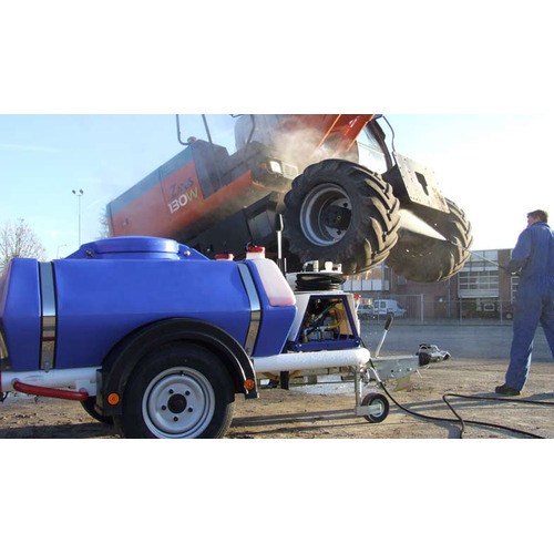 Krachtige hogedrukreiniger op benzine met watertank van 1000L. Voor het reinigen van werfmachines, verwijdering grafitti, gevels, ... Werkt op 220 Bar, mogelijkheid om een hotbox aan te sluiten om te spuiten met warm water. Is inzetbaar op plaatsen waar geen water is. Zeer gebruiksvriendelijk en onmiddellijk werkklaar. Autonomie van 1 uur continue spuiten. Uitgerust met antivriesmiddel voor buitenopslag bij vorst. - druk 200 bar bij 15 L/min - watertank 1000 L - chemicaliëntank 28 L - anti-vries tank 15 L - robuste uitvoering - geremde trailer, voorzien van eigen nummerplaat