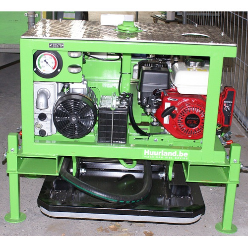 Vacuümunit met Honda benzinemotor, geschikt voor het liften en nauwkeurig plaatsen van betonplaten (type Stelcon, Eurodal), zware tegels, boorstenen tot 1000 kg. Kan ook aan een graafmachine bevestigd worden. Geschikt voor betonplaten tot 200 x 200x .. (type stelcon, Eurodal). Standaard uitgerust met vacuumplaat tot 1800 kg, afmetingen 70cm x 90 cm. benzine motor Honda Hefvermogen: standaard uitgerust met zuignap 1800 kg vacuumpomp: 48000 L/u electrisch gestart radiografische bediening met kraanoog en heftrucksleuven