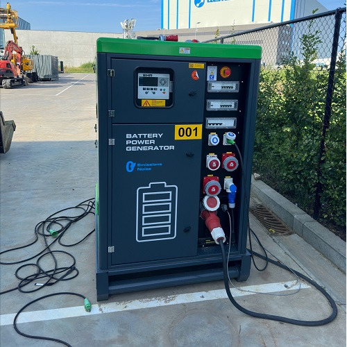 Huur een batterijpack om je werf op een duurzame manier te voorzien van energie. Een battery pack huren kan voor verschillende opstellingen: - UPS: bij stroomonderbreking neemt de batterij de volledige energievoorziening over. - peak shaving: ipv een zware (100 KVA) generator zet je een lichtere (45 KVA) voor het basisverbruik. De batterij vangt de piekstromen op van bv. torenkranen. - cycling: de batterij dient als primaire bron en laat zich ontladen tot een minimumgrens, waarna ze door een generator wordt opgeladen. Hierdoor reduceer je aantal draaiuren of vermijd je nachtelijk lawaai. In elk geval huur je een duurzame opstelling die de CO² emissie van klassieke dieselgeneratoren sterk vermindert of volledig uitschakelt. De machine kan verschillende energiebronnen hebben zoals een generator, het net en solar. Nominaal vermogen: 45 KVA Batterijinhoud: 58 kWh