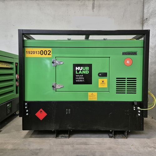 Huur een compacte generator met max. vermogen tot 12 KVA. Ideaal voor werven - NIET voor evenementen. Zowel mono- als driefasig. Deze compacte stroomgroep is uitermate geschikt voor langetermijnverhuur. Door de traagloopmotor (1500 t/min) draait de machine stilleren verbruikt minder. De voorziene aansluiting voor een externe tank zorgt ervoor dat je deze machine op lange termijn kan inzetten. Voor lange termijn huur gelden kortingen vanaf 25 %, vraag ernaar in de winkels. Krachtbron: Diesel - 1500 rpm Technische fiche: 13.2 KVA - 12 KVA continu 220 V mono 20A 380 V 3fa. 14 A tankinhoud: 100L verbruik: 3.5 L/uur Brandstof: Diesel EN590 autonomie: 28.5 uur 1 aansluiting: mono 1 aansluiting: trif. stekker 32A 6h 5P geluidsniveau: 62 db