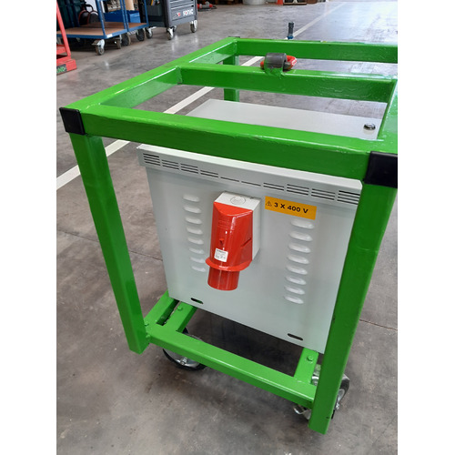 Max. stroom 36A bij 400V / 62A bij 230V Ingang : 3x400V 1x 3P+N+A - 32A - 6h Uitgang : 3x230V 1x 3P+A - 63A - 6h Omkasting IP54 Norm EN60076 - Conform CE Gewicht: 130 Kg Tijdelijke electrische installaties, dienen na montage gekeurd te worden door een erkende instantie. Alvorens eindverbruikers te schakelen, zeker de spanning op de stopcontacten controleren.