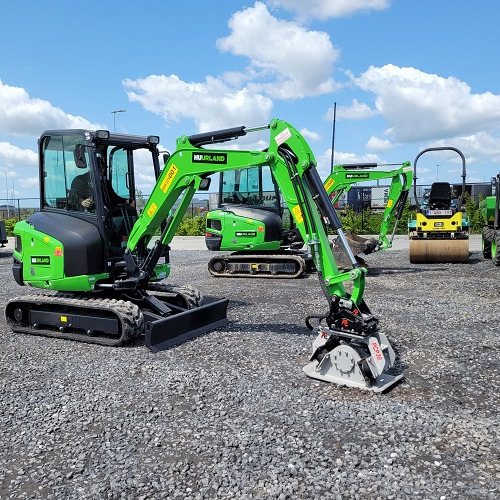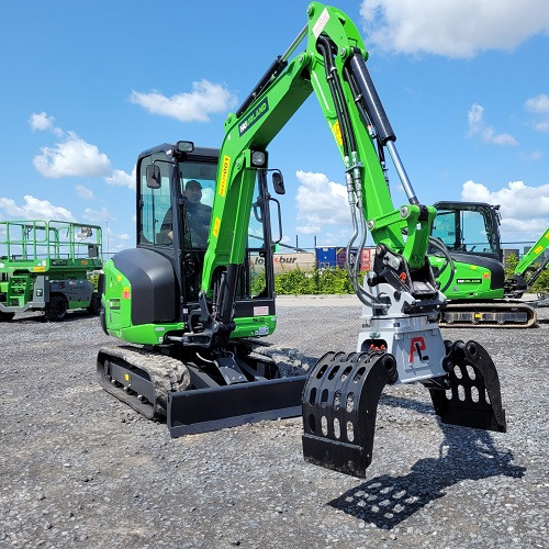 Deze minigraver is speciaal uitgerust met sloopsorteerleidingen en wordt enkel verhuurd met de sorteergrijper of trilblok. Deze aanbouwdelen vereisen extra leidingen. De minigraver van 2,5 ton is het meest courante model. Huur deze kraan voor grondwerken, zoals het graven van een sleuf, putten, uitkofferen van een terras of oprit, e.d. Dit kraantje wordt ook verhuurd in combinatie met de breekhamer voor afbraakwerken, of met een grondboor voor aanleg van tuinen. Dit type graafmachine is een buitendraaier (contergewicht komt buiten de rupsen). Daardoor is de machine ondanks haar beperkt gewicht toch zeer stabiel en krachtig. Moet u langs een muur werken, dan huurt u beter een 3,5 tons minigraver, dat zijn binnendraaiers. Prijs incl graafbak naar keuze. Spoorbreedte 140 cm. max graafdiepte 2,49 m max storthoogte 4,36 m Steeds inclusief gratis bakken naar keuze: - sleuvenbak: 25 cm - Graafbak met tanden: 50 cm - Kofferbak: 120 cm - inhoud brandstoftank: 45 l max 8 uur op teller per dag / 10.8 uur per weekend / 40u per week; extra uren worden verrekend aan 1/8ste dagtarief