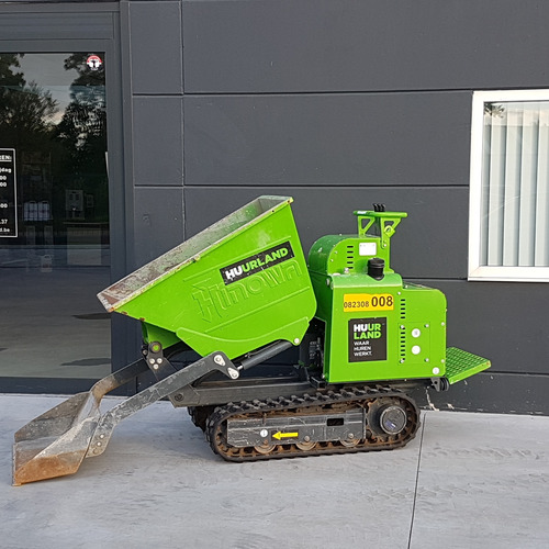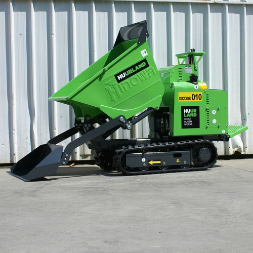 Deze rupsdumper is uitermate compact en veelzijdig. Huur deze minidumper voor werken in en rond de woning, als de toegang beperkt is. De rupsdumper heeft een breedte van 80 cm en kan door een deur. Met drassige ondergrond heeft dit type dumper geen probleem. Zeer interessant is de laadschop waarmee je in enkele scheppen de bak vult. Deze rupsdumpertjes rusten wij uit met een verhoogde rijsnelheid om sneller de lading te verplaatsen. Al deze specificaties maken de dumper ideaal voor het laden en verplaatsen van hopen grond tot enkele kubieke meters. - motor 13 PK - laadvermogen 340 L of 800 kg - verhoogde rijsnelheid - met schepbak, dus zelfladend, geen extra kraan of lader nodig. - max 8 uur op teller per dag / 10.8 uur per weekend / 40uur per week; extra uren worden verrekend aan 1/8ste dagtarief