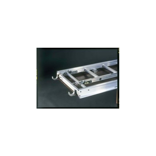 Stalen stellingsplateau 3 m voor de gevelstelling. Op te bouwen naar keuze. 3 stuks naast elkaar nodig om een volledig plateau te bekomen. Lengte 3 m x breedte 33 cm. - gegalvaniseerd - met opwaaibeveiliging - klasse 4 (300 kg/m²)