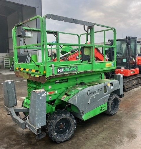 Schaarlift diesel 12 m voor buitenwerkzaamheden zoals montage en onderhoud werkhoogte 12.15 m platformhoogte 10.15 m platform 245 x 148 cm uitschuif: 120 cm hefcapaciteit 450 kg bodemvrijheid 27 cm verrijdbaar tot 10 m hoogte 4WD met sperdifferntieel rijsnelheid 0.8 - 5.5 km/h transportlengte 3.2 m transportbreedte 1.8 m gewicht 4060 kg - max 8 uur op teller per dag / 12 uur per weekend / 40 uur per week - bij overschrijding : 1/8 dagtarief per uur extra